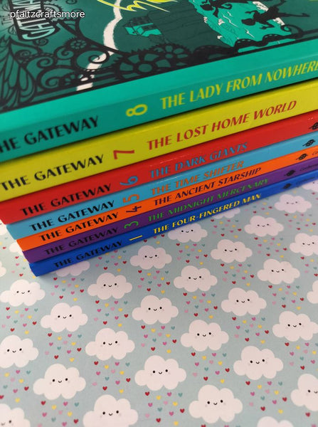 Includes books #1 - #8 (missing #2), as pictured. All books are softcovers, except for book #7 which is hardcover. Pages are clean and unmarked; no rips or tears, bindings tight. Covers in great shape, with small partial retail sticker on front of each. No other stickers, no stains.