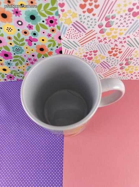 Mug is clean with no stains, crack forming on both top & bottom of handle. Measures approx. 3.75" tall.