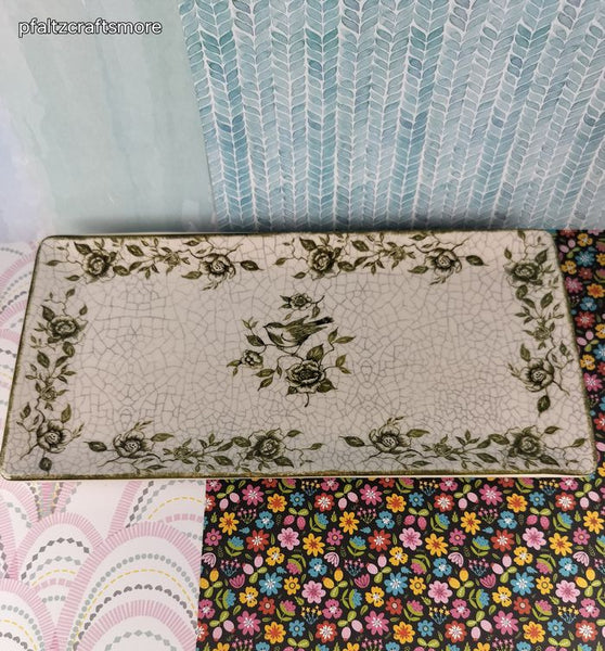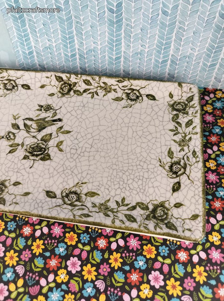 Serving platter measures approx. 7" x 14.5". Like New with no chips, cracks, scratches, or stains.