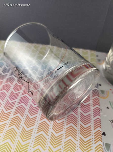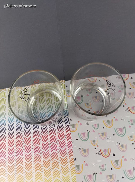 Includes 2 (two) tumblers as pictured. Nice & clean, no signs of wear or use. Glass is free from any chips, cracks, scratches, or stains. Designs in perfect shape. Each measures approx. 4" tall.