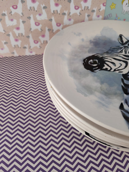 Includes 5 (five) plates as pictured, each measuring approx. 8.75" diameter. Clean from any staining, edges have some small chipping in spots. No major cracks.