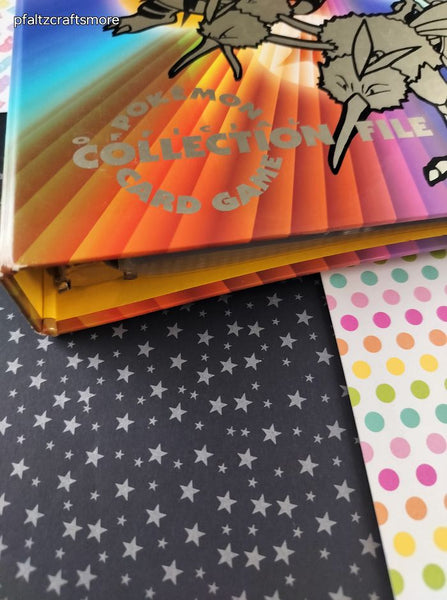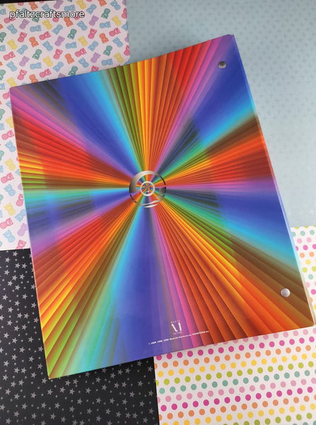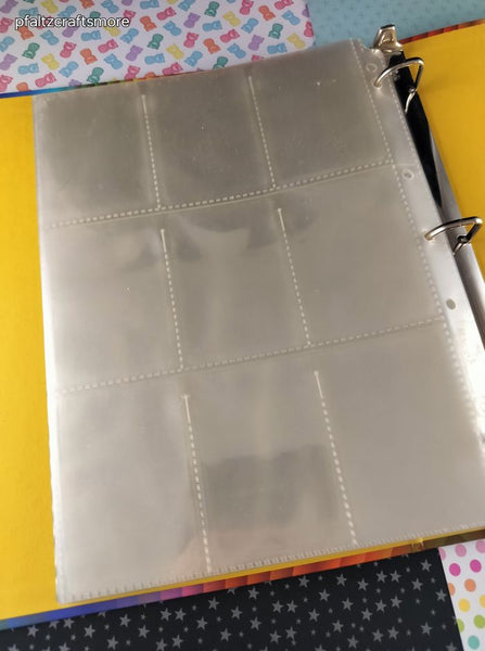 Includes 1 (one) binder w/38 9-pocket pages. No cards included. Inside is clean, pocket pages are clean. Outside front design in near perfect shape with only a few light surface scratches, smooth to the touch. Mild bumping at edges, back is slightly curved but no creases. Rings clasp tight.
