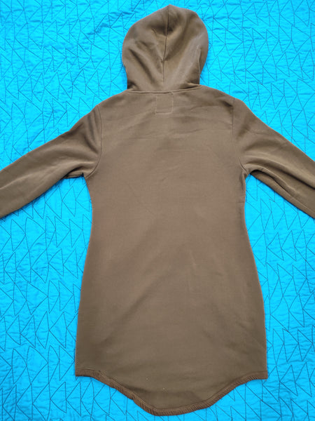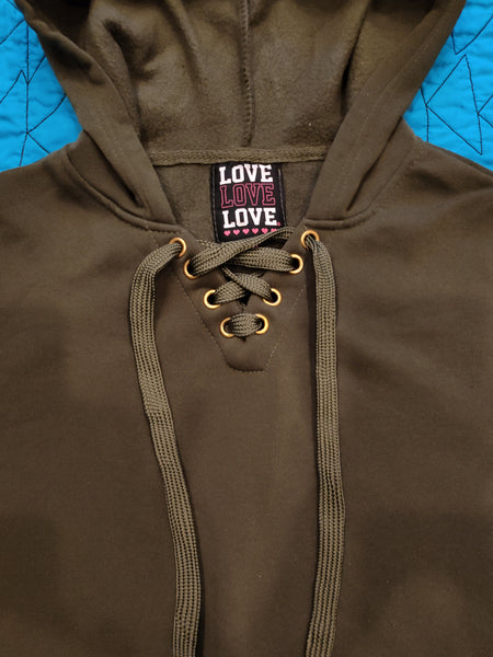 Victoria Secret LOVE Pink Long Hooded Pullover Sweater, Olive Green Sz XL