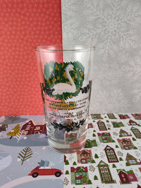 Vintage 12 Days of Christmas "7th Day" Glass Tumbler, Nice & Clean