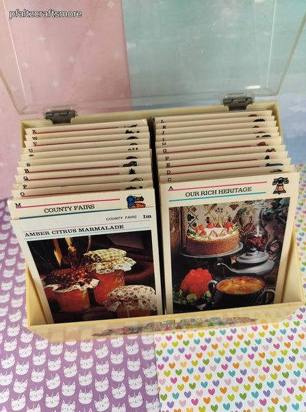 Includes clean cards in original storage container; unknown if all original cards are included. No rips or tears to cards, no stains. Box is clean with some light yellowing, very light fogging of clear plastic. Case is clean with no cracks or chips.