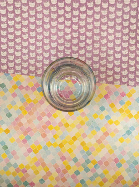 Includes 1 tumbler as pictured. Measures approx. 6" tall. Glass in perfect shape with no scratching, no cracks, no stains. Design in perfect shape. Like new.