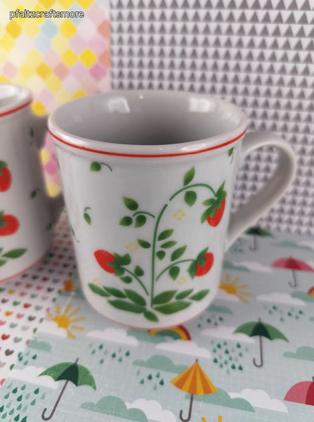Includes 2 (two) mug, as pictured. In excellent shape with no wear or scratching to design, no chips or cracks. Each measures approx. 3.25" tall.