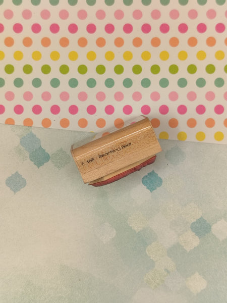 Includes 1 (one) wooden/rubber stamp block, as pictured. Stamp has some very light staining, Sticker on side. Stamp block measures approx. 1.75" x 1.75".