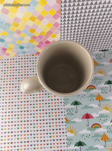 Includes 1 (one) mug, as pictured. Measures approx. 3.75" tall, like new. No chips, cracks, scratches, or stains.