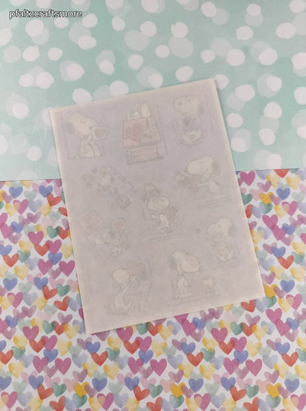 Vintage 1990's Hallmark Peanuts Snoopy Valentine's Day SHINY Hearts Full Sticker Sheet, Clean & Unused