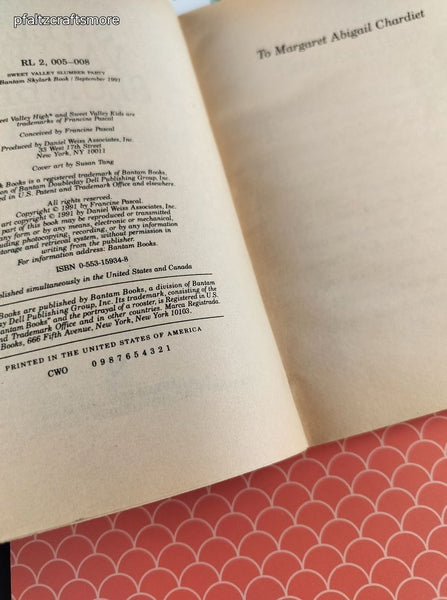 Vintage 1991 1st Printing Sweet Valley Kids #22 "Sweet Valley Slumber Party" Softcover