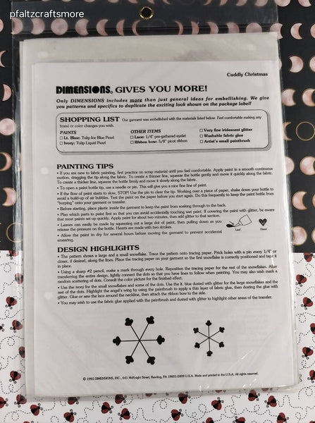 Vintage 1992 Dimensions Iron-On Fashion Transfer Christmas Angel w/Teddy Bear NEW SEALED