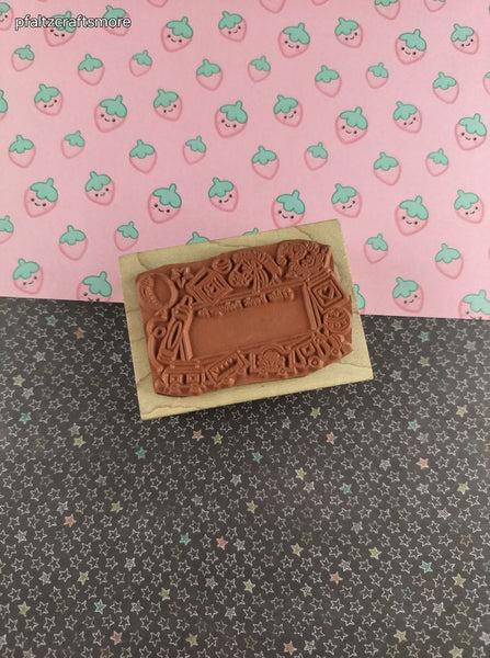 Includes 1 (one) wooden/rubber stamp block, as pictured. Rubber of stamp & underside of wood are both clean. Measures approx. 2.25" x 3".