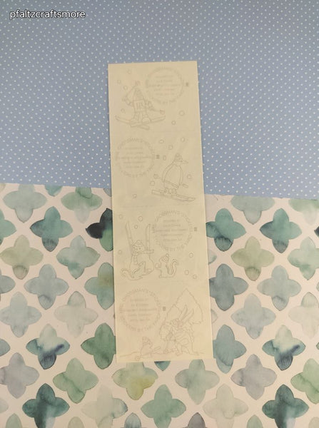 Includes 1 (one) sheet of unused stickers, measuring approx. 2" x 6.5".