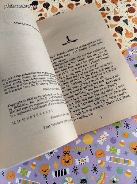 Softcover, 1st Scholastic Printing. Pages are clean and unmarked; no rips or tears, binding tight. Cover shows minimal rubbing around edges & corners, slight tearing at top of spine. No stains, original retail sticker on back. No trading cards included.