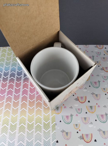 Includes mug in original box. Mug in like new condition; no signs of wear or use. Box in great shape overall, some black smudging on top flap (outer). Light tearing on bottom (outer) from previous sticker. Mug measures approx. 3.5" tall.
