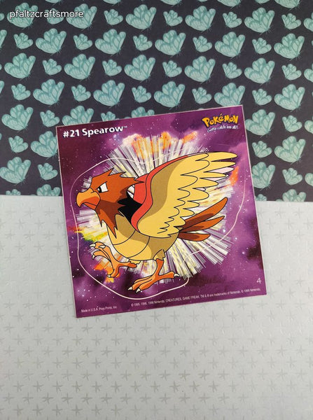 Vintage 1999 Pokemon Priss Prints Game Freak #21 Spearow Jumbo Sticker, New & Unpeeled