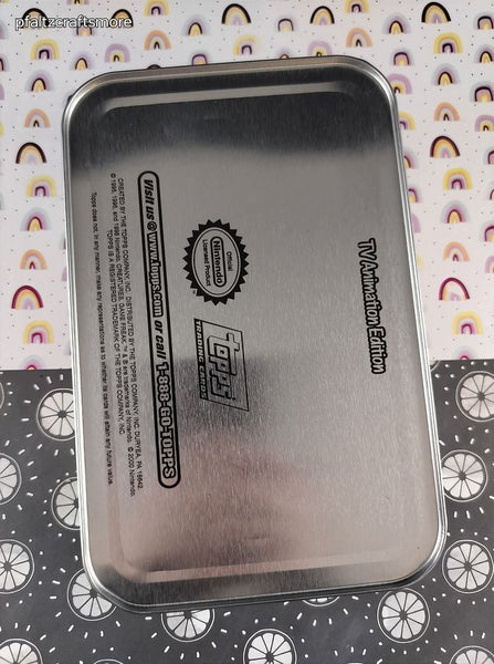 Includes 1 (one) tin as pictured, no contents or cards. Tin only. Measures approx. 8.5" x 5.5" x 2.5". Inside has some very light rust scuffing on bottom, lid has some very mild scratching at corners. No major scratches, no cracking, no stains.