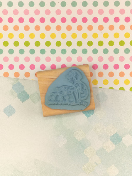 Includes 1 (one) wooden/rubber stamp block, as pictured. Stamp is clean, wooden block is clean. Stamp block measures approx. 1.75" x 2".