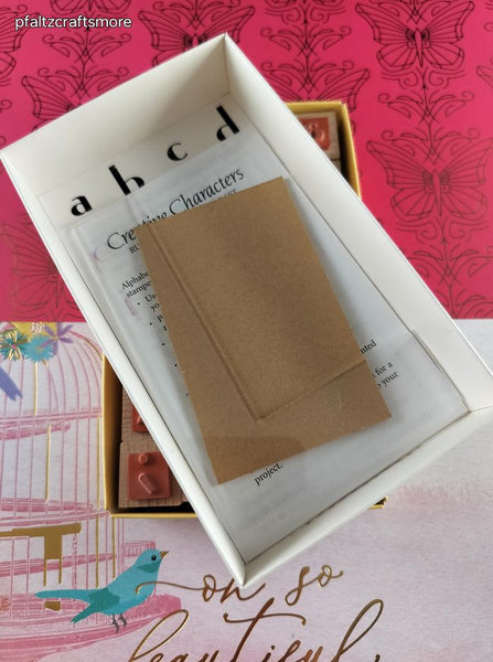 Complete set in original box, never used. Each stamp measures approx. .75" x .75".