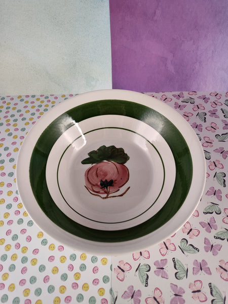 Vintage Action Korea Hand-Painted Veggie Vegetable Deep Soup Bowls Set/3, Nice & Clean