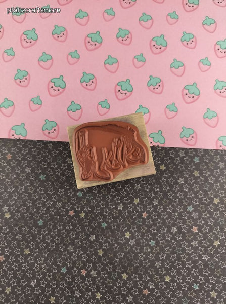 Includes 1 (one) wooden/rubber stamp block, as pictured. Rubber of stamp & underside of wood have some mild staining from light use. Measures approx. 1.5" x 2".