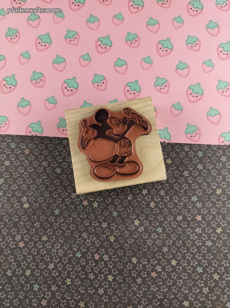 Includes 1 (one) wooden/rubber stamp block, as pictured. Rubber of stamp & underside of wood have some mild staining from light use. Measures approx. 2.5" x 2.5".