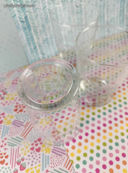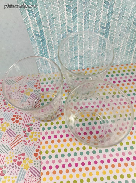 Includes 3 (three) glass tumblers, as pictured. Like New. No chips, cracks, scratches, or stains. Each tumbler measures approx. 4.25" tall.