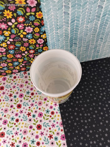 Cup measures approx. 4" tall. Nice & clean, some light wear/fading to design as pictured.