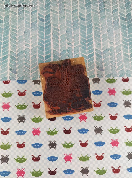 Includes 1 (one) wooden/rubber stamp block, as pictured. Rubber of stamp & underside of wood have some staining from light use. Measures approx. 2" x 2.5". Original retail sticker on side.