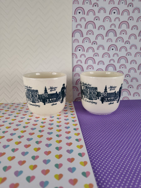 Made in Germany. Includes 2 (two) tumblers, as pictured. Nice & clean, like new. No chips, cracks, scratches, or staining. Each measures approx. 2.75" tall.