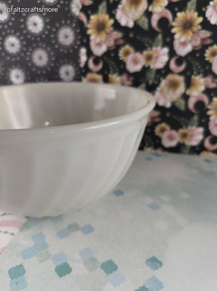 Like New. Bowl is nice & clean with no chips, cracks, or stains. No scratching, measures approx. 8" diameter, approx. 4" tall.