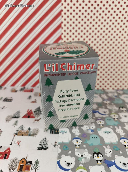 Vintage Jasco Lil Chimers Ceramic Christmas Mouse Bell Ornament, NIB