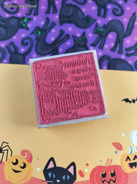 Includes 1 (one) wooden/rubber stamp block, as pictured. Rubber of stamp has minimal staining from light use. Measures approx. 3" x 3". Sharpie marking on side.