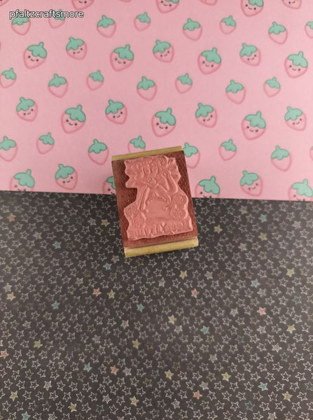 Includes 1 (one) wooden/rubber stamp block, as pictured. Rubber of stamp & underside of wood are both clean. Measures approx. 1.25" x 1.75".