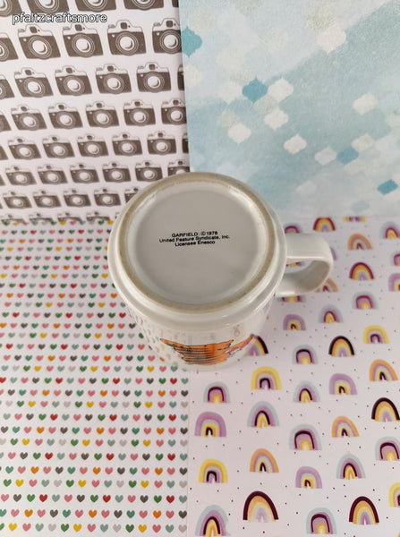 Includes 1 (one) mug, as pictured. Like New. No chips, cracks, scratches, or stains. Measures approx. 3.5" tall.