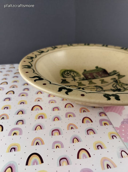 Includes 1 (one) bowl, as pictured. Measures approx. 10" diameter. Nice & clean, only the most minute of light silverware scuffing (surface only) can be seen in direct light. Smooth to touch. Design in perfect shape. No chips or cracks, no stains.
