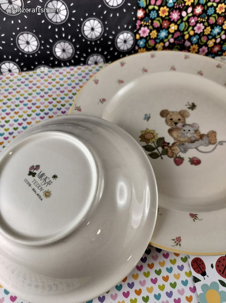 Includes 1 (one) mug, bowl, and plate as pictured. Plate measures approx. 10" diameter, bowl measures approx. 6.75" diameter (at top), mug measures approx. 3.5" tall & 3.5" diameter (at top). Like New, no signs of wear or use.