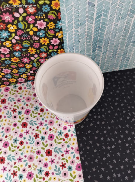 Cup measures approx. 4" tall. Nice & clean, some light wear/fading to design as pictured.