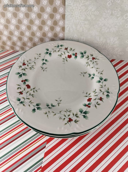 Includes 4 (four) plates, as pictured. Each plate measures approx. 8" diameter. Nice & clean with no chips, cracks, or stains. Minimal light surface scuffing from use, surface is clean to the touch.