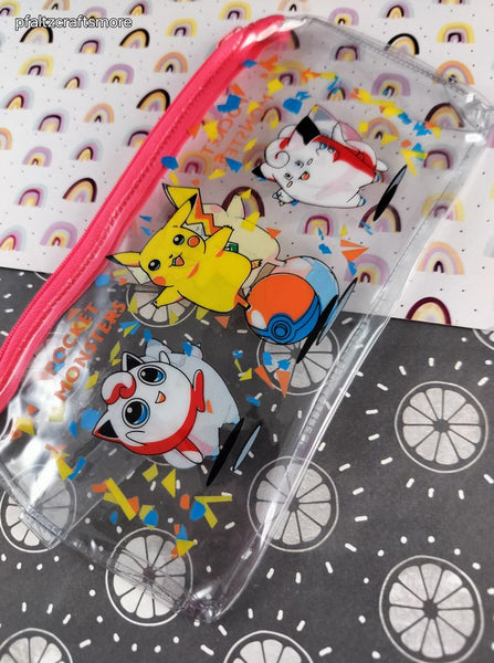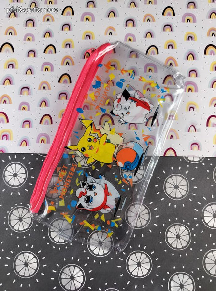 Vintage Pocket Monsters Pokemon Clear Soft Plastic Pink Zip Case, Like New