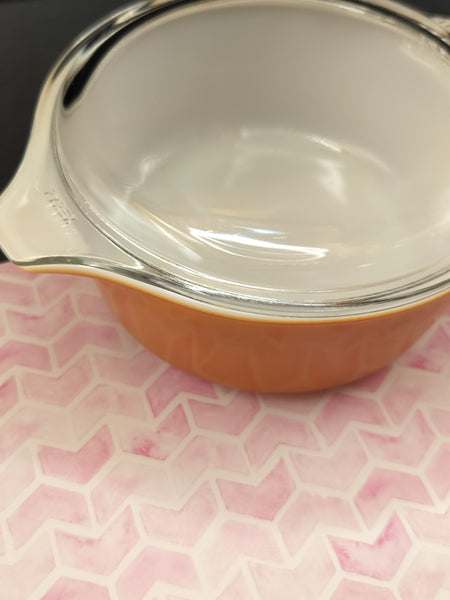 Includes casserole dish w/lid, as pictured. 1-1/2 pt. Dish is clean with no chips or cracks, no stains. Single approx. 1/2" surface scratch on outside, does not break surface and is smooth to the touch. In great shape overall.