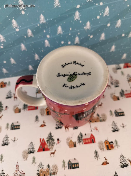 Vintage Starbucks Deborah Reinhart Christmas Peace on Earth Red Coffee Mug