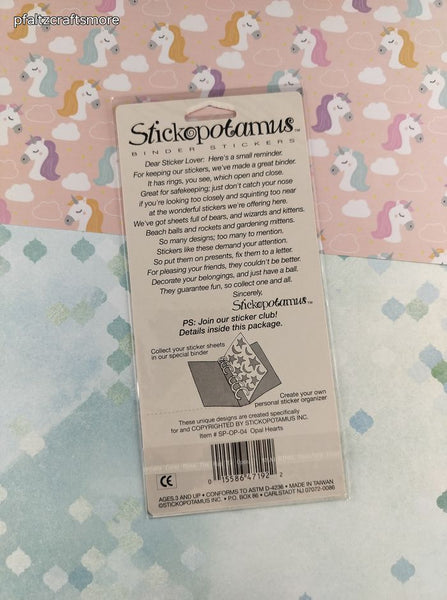 Vintage Stickopotamus "Hearts" SHINY Binder Sticker Sheet, New & Sealed