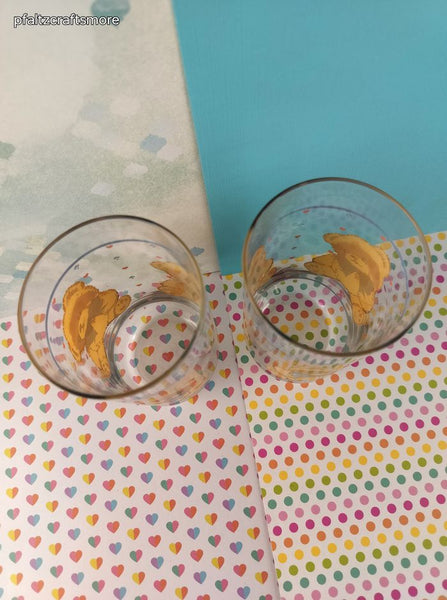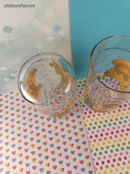 Includes 2 (two) tumblers, as pictured. Nice & clean, like new. Design is clean, no fading. No scratches, chips, cracks, or stains. Each tumbler measures approx. 5.75" tall.