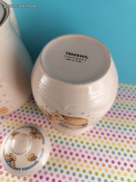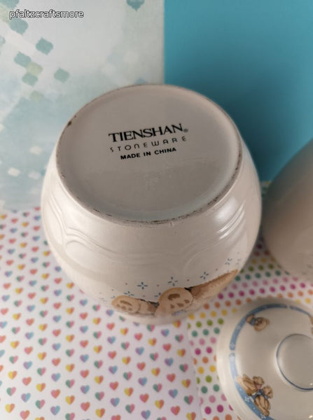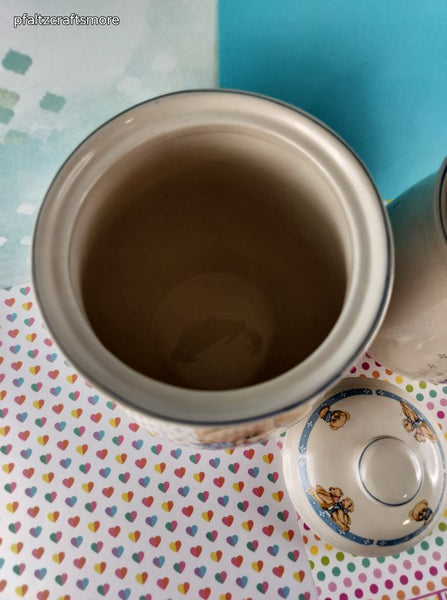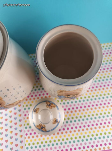 Includes 1 (one) set of 2 (two) canisters/jars; smaller measures 6" tall, larger measures approx. 7" tall. Measurements do not include lides. Nice & clean, Like New. No scratches, chips, cracks, or stains.