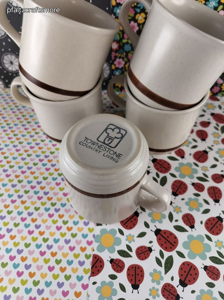 Includes 5 (five) mugs measuring approx. 3" tall & 3.25" diameter (at top), as pictured. Like new, no signs of wear or use.