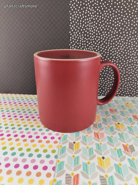Includes 1 (one) mug, as pictured. Measures approx. 4.25" tall, design in great shape. No chips or cracks to ceramic itself, no stains.